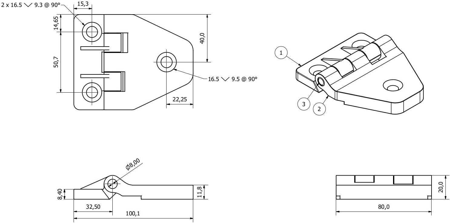 This listing is for a pack of two top quality, industrial grade polymide plastic hinges with stainless steel pins. Ideal for use outside, when corrosion can be an issue for metal hinges. As fitted as an OEM part by many truck/trailer manufactuers but also popular as a high quality alternative on motorhomes, caravans etc Designed to be surface mounted with three countersunk mounting holes. 135 Degree Opening. Made from a strong, reinforced polymide plastic. Multiple fingers for strength. Made in Italy. 80mm Tall and 100mm Wide.