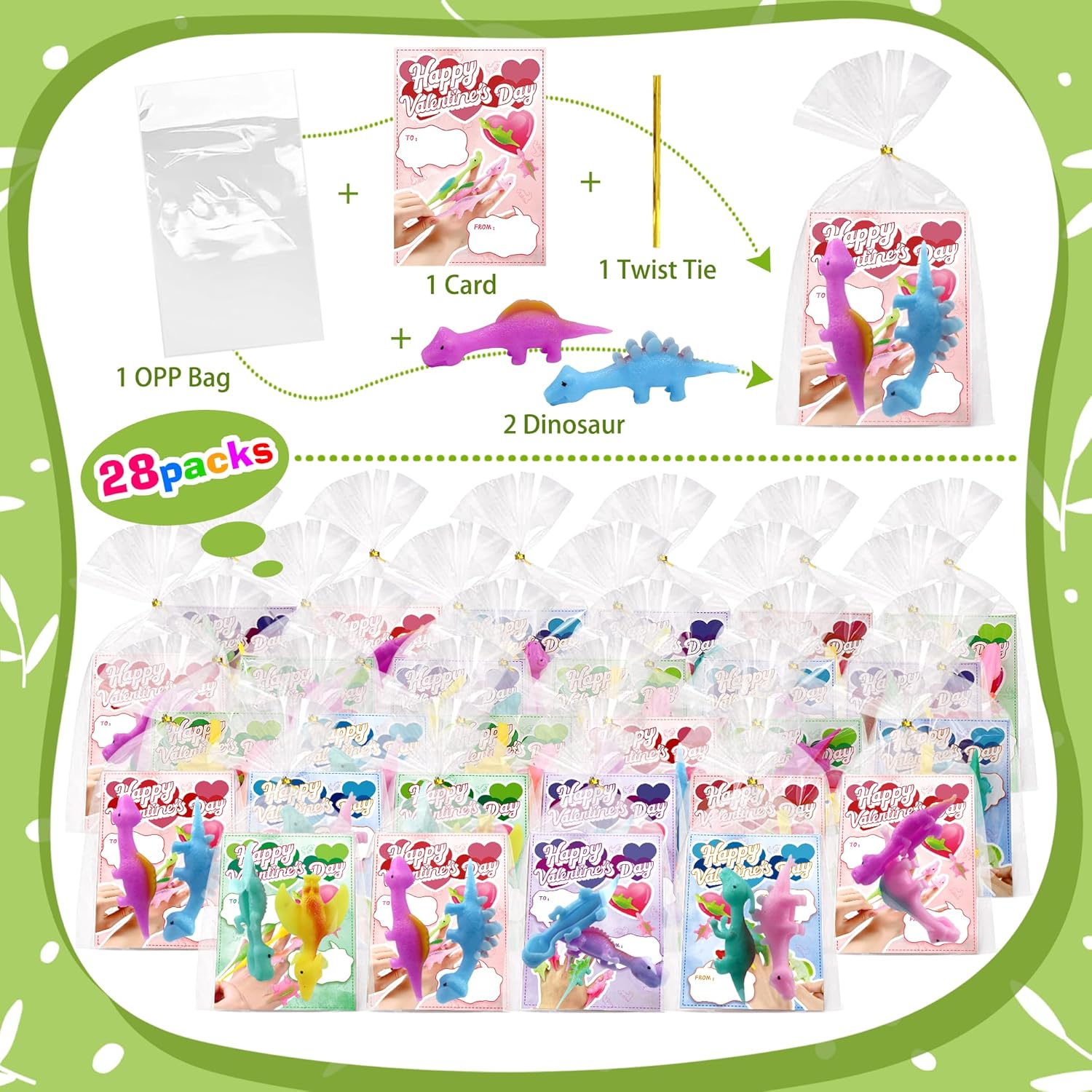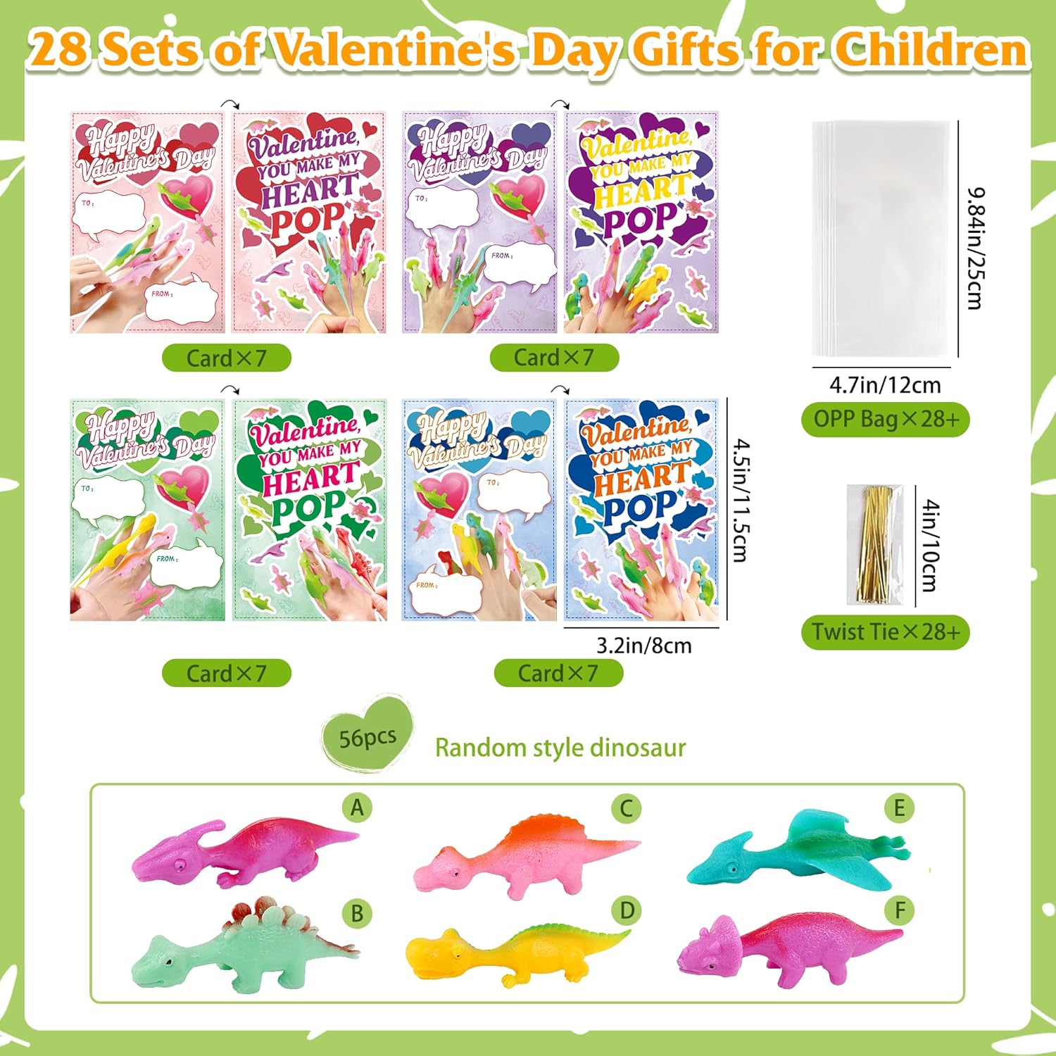 | Included Components | 56 random style rubber dinosaur, 28 cards, 28 plastic bags, and 28 twist ties |