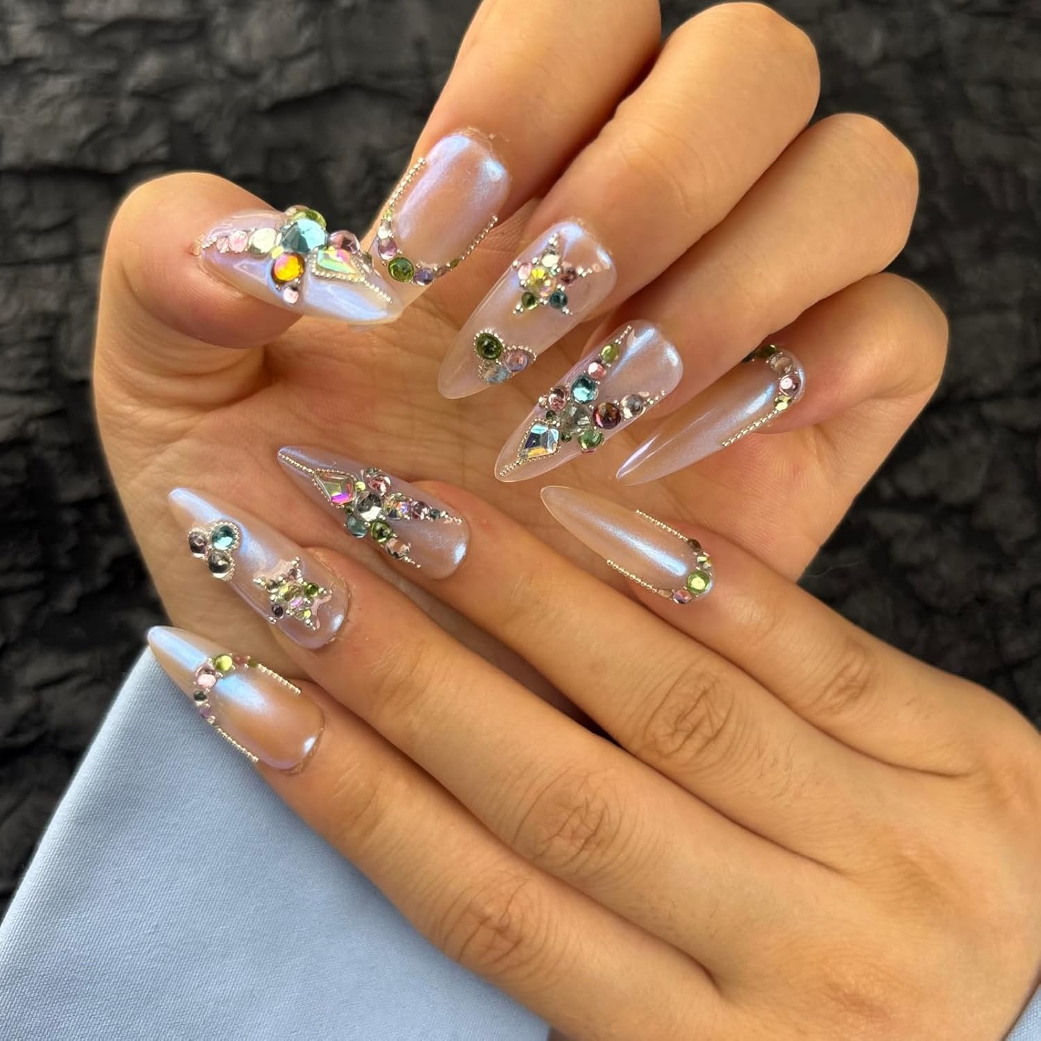 The design concept of "Lost&Hope" : Grayish blue is used as the base color to create the entire scene. Gray represents disappointment and depression. On the gray surface, there are many white growing flowers, representing new vitality in despair, meaning rebirth in despair(2Hrs for one pair aka unicorn nails making)