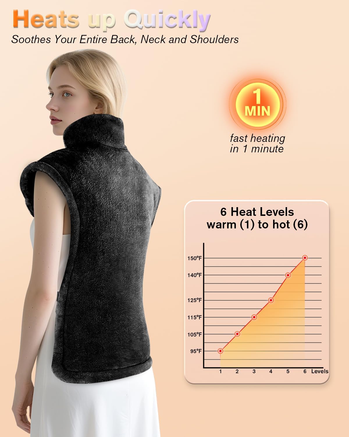 | Additional Features | christmas gifts for women Pain relief neck shoulder and back heating pad, Full body heating pad, Gifts for mom Anniversary retirement gift for wife husband, Automatic Shut Off, Overheating protection, Timer, 6 heating levels, white elephant gifts stocking stuffers |
