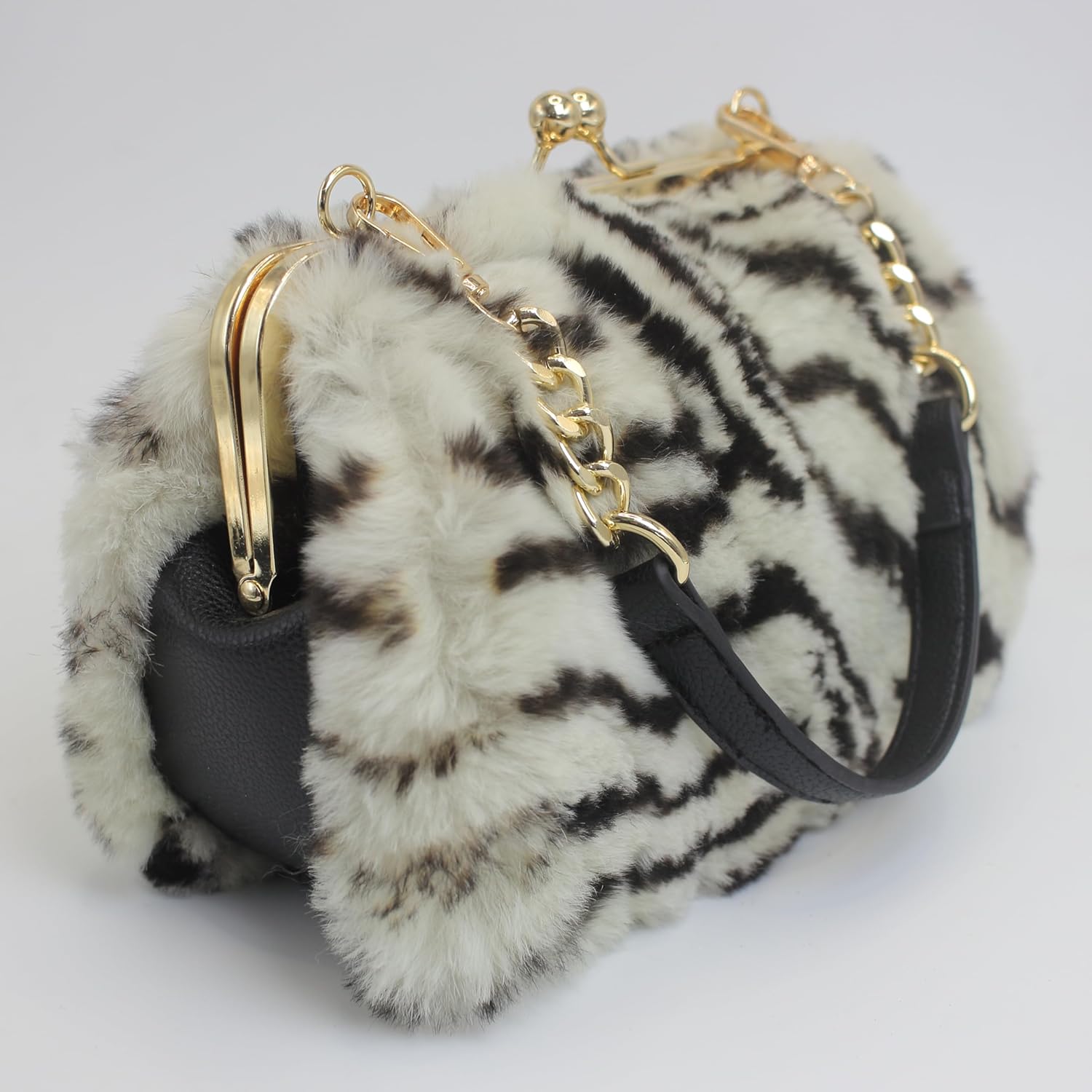 Add a touch of luxury to your evening attire with this elegant rex rabbit fur handbag. Made from genuine rex rabbit fur, this purse boasts unmatched softness and a plush texture that exudes sophistication. Perfect for evening events, it offers a compact size to store essentials such as your phone, cosmetics, and small personal items. Key Features: Premium Rex Rabbit Fur Material: Crafted from 100% genuine rex rabbit fur, known for its incredibly soft texture, warmth, and lightweight feel. Ethically Sourced Fur: All fur is obtained from farm-raised rabbits, with animal welfare prioritized throughout the breeding and harvesting processes. Eco-Friendly Craftsmanship: The fur undergoes advanced tanning and dyeing techniques, ensuring a durable, eco-conscious product with vibrant, long-lasting patterns. Handcrafted Perfection: This bag is meticulously handcrafted, with attention to detail and high-quality stitching, ensuring both beauty and durability. Versatile Design: Includes a short chain strap for hand-carry and a detachable, adjustable long strap for shoulder or crossbody wear, catering to your various styling needs. Unique Patterns: Available in multiple elegant patterns to suit your style; the attached images showcase three of the stunning designs.