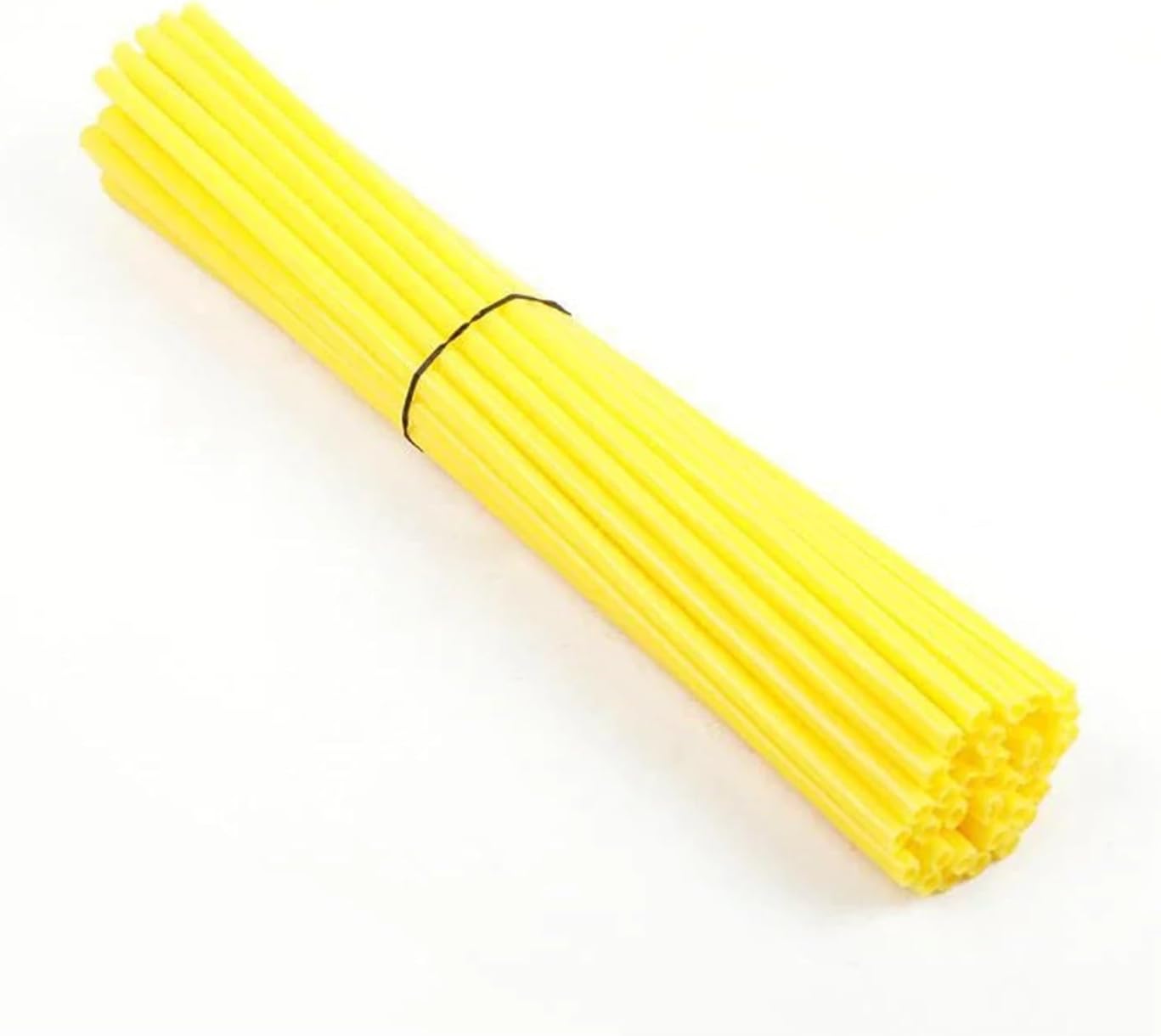72 Pcs Universal Bicycle Spoke Holster Tire Decorative Rim Protective Covers Compatible With Enhancing And Protecting Bicycle And MotocrossMain DescriptionWidely Used:The Spoke Skins is Suitable Compatible with Dirt Bike Yamaha BMW Suzuki Kawasaki,Motorcycle,Mountain Bike,Road Bike, Folding Bike, Kids Bike,Touring Bike and Wheelchair and Other Wire Wheels. One Package Contains 72 Spoke Skins,Enough Compatible with Both Wheels to Use.Decorate & Protect Spokes These Spokes Covers not only Make Your Bike Fashionable and Cool but Effectively Prevent Dirt, Rust from Spokes, Increase Spokes Life.Easy to Install and Remove: No Glue or Special Fasteners are Required. Just Measure the Length of the Spoke and Cut the Spokes Covers to the Suitable Size, and then Open the Slit on the Side of the Spoke Cover and Press it in Spoke.High Quality Materials & Safety Made from High Quality Plastic High Temperature Resistant, Bright Color and Not Easy to Fade, Durable to Use. When You Install the Spoke Skins,You do Not Have to Worry that it Will Fall off. The covers are Tightly Stick to the Spokes, and Even When the Wheels are Running at High Speed, It Does Not Fall Off.Type: Spoke CoverQuantity: 1 Pack (including 72pcs)Length: 24 cmFast Fulfillment: YesPlacement on Vehicle: Front and rearApplication: Universal Compatible with most motocross, dirt bikes, off road motorcycles with proper sizeFeature1. Durable, high temperature resistance, not easy to fade, no toxic or other smells, sharp color and long lasting covers Compatible with your dirt bike's front and rear spokes.2. No need other tools, the spoke cover is not only flexible, but also easy to mount and dismantle in a few seconds.3. It not only make your bike look great, but keep your spokes from vibrating loose and protect them.4. Dozens of colors Compatible with choices to help your beautify the motorcycle, fashionable and cool, bring a new look Co