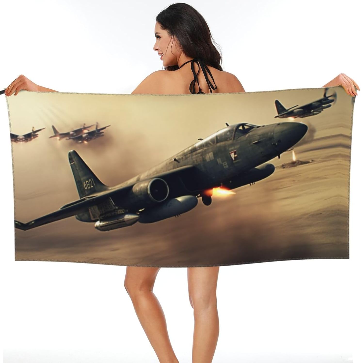 War Plane Quick Dry Towel.Design:Full Width Single Side Printing.Material:Microfiber Material.Product Performance:Our Beach Towels Are Made Of Soft Microfiber,Smooth And Compact,With Better Water Absorption Than Ordinary Towels,This Quick-Drying Fabric Has Excellent Performance In Absorbing And Diffusing Water,Which Can Shorten The Drying Time Of Water.The Towel Comes With A Special Bag And Climbing Buckle For Easy Packing And Hanging,And Can Be Hung Anywhere For Quick Air Drying.Ultra-Lightweight And Ultra-Compact,The Towel Can Easily Be Placed In A Gym Bag Or Backpack.Climbing Buckle On The Pouch For Attaching Or Fitting Into Your Bag.Foldable Design Makes It Easy To Fold Into A Travel Bag,Store In Your Suitcase Or Backpack.The Gift Bag Is Also Suitable For Storing Cell Phones,Wallets,Sunglasses,Goggles,Swim Caps,Etc.Most Suitable For Sports,Travel Enthusiasts.Applicable Scenes:Outdoor Camping,Hiking,Beach,Travel,Gym,Home Use Are Available.Accessories:Towel With Hanging Buckle Webbing,Easy To Hang Air Dry,Pvc Bags,With Climbing Buckle,Easy To Store And Carry.Washing Instructions:Machine Washable,Wash Before First Use,Just Hand Wash Or Machine Wash,Air Dry.Please Do Not Bleach.